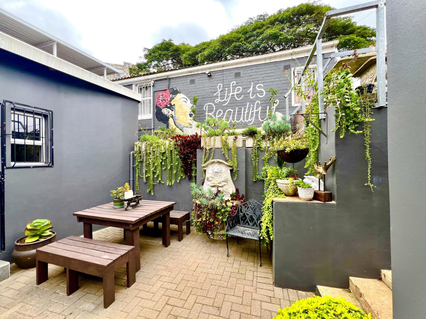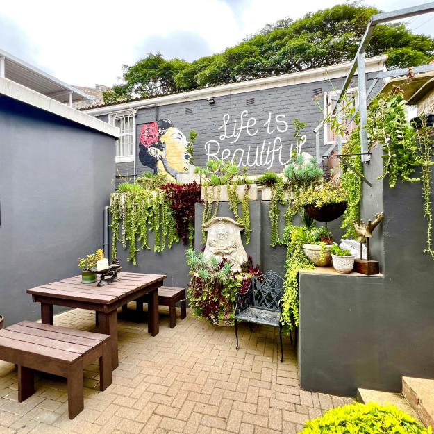 Terebinte is situated on 62 JB Marks road (previously Chelmsford) forms part of a property in upper Glenwood in Durban. It has the charm of a traditional Durban historic home with wooden floors and high ceilings and an old fashioned garden, with Cycads, mango and banana trees.